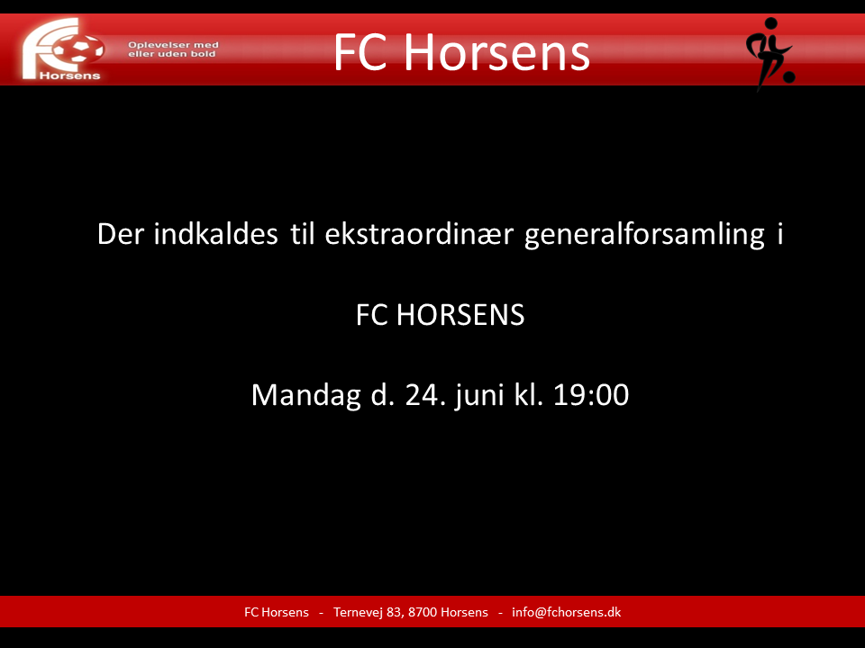 På FC Horsens ordinære generalforsamling blev forslaget om redaktionelle ændringer af vedtægterne vedtaget, men da antallet af medlemmer, der deltog i generalforsamlingen ikke var stort nok til en andelig vedtagelse, skal ændringer også vedtages på en ekstraordinær generalforsamling. Ændringerne i vedtægterne skyldes, at begge de organisationer, som FC Horsens er medlem af har ændret deres navne.