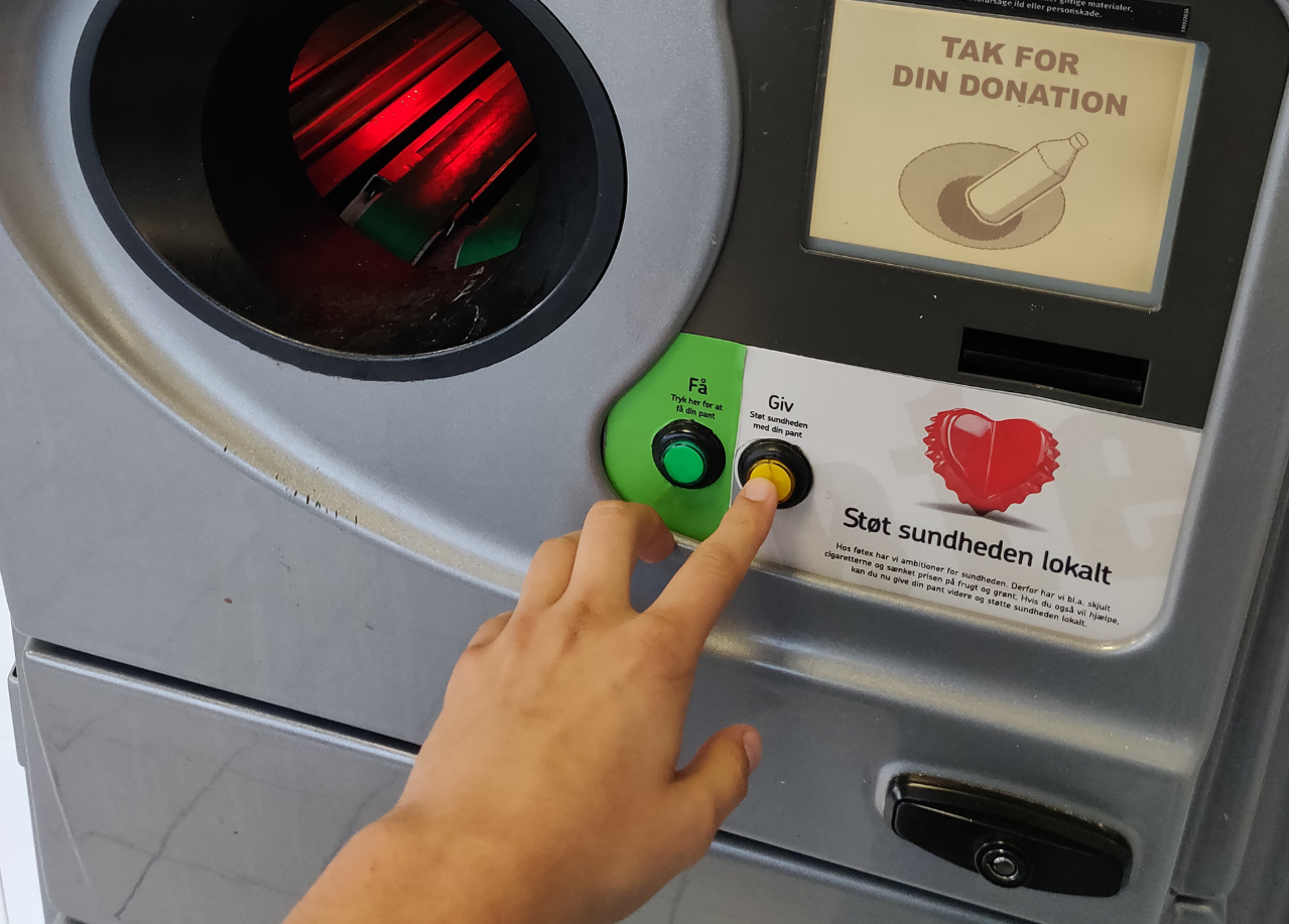 Klik på knappen 'Giv - Støt sundheden lokalt', og din flaskebon bliver doneret til aktiviteter i FC Horsens.